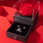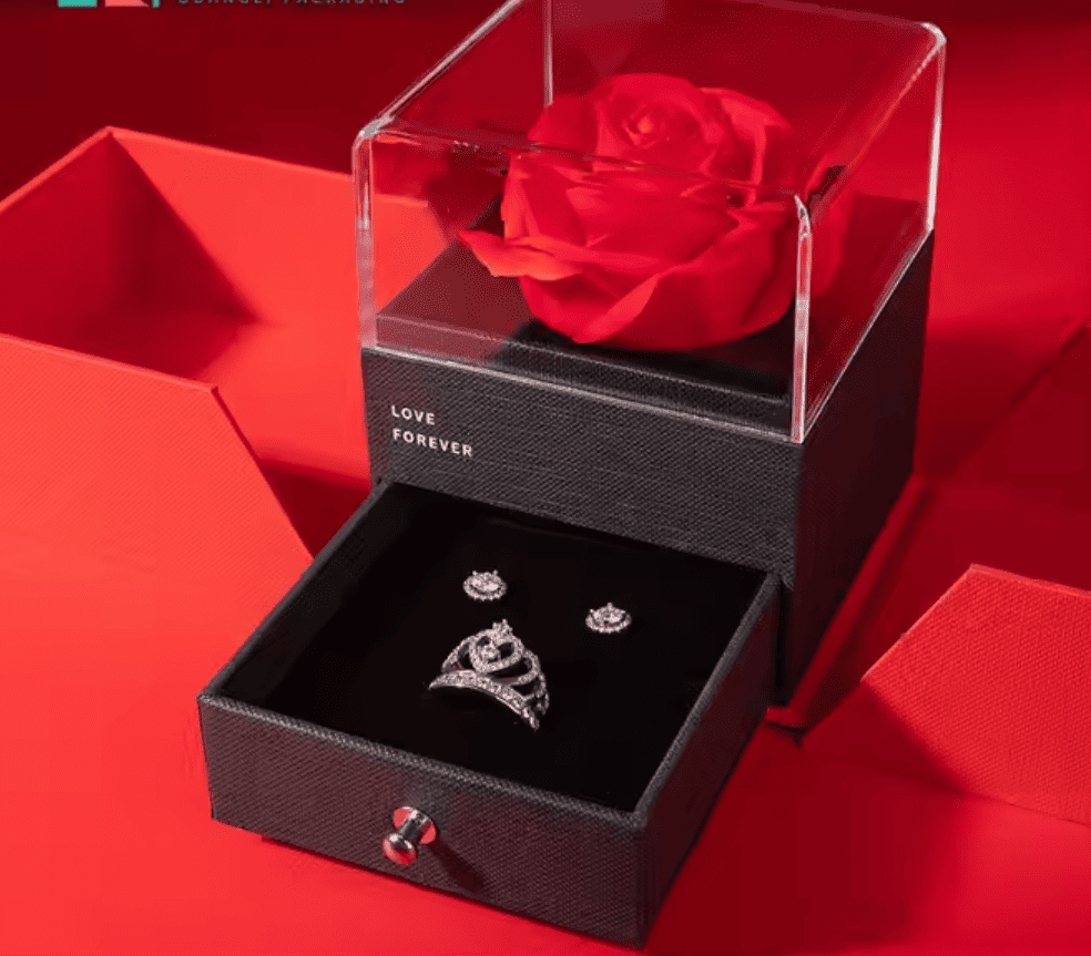 Hermoso cofre joyero para regalo romántico que viene con una rosa eterna doble puerta ideal para sorprender en fechas especiales, san Valentín, aniversario etc